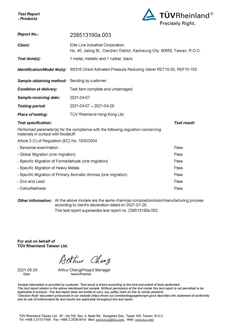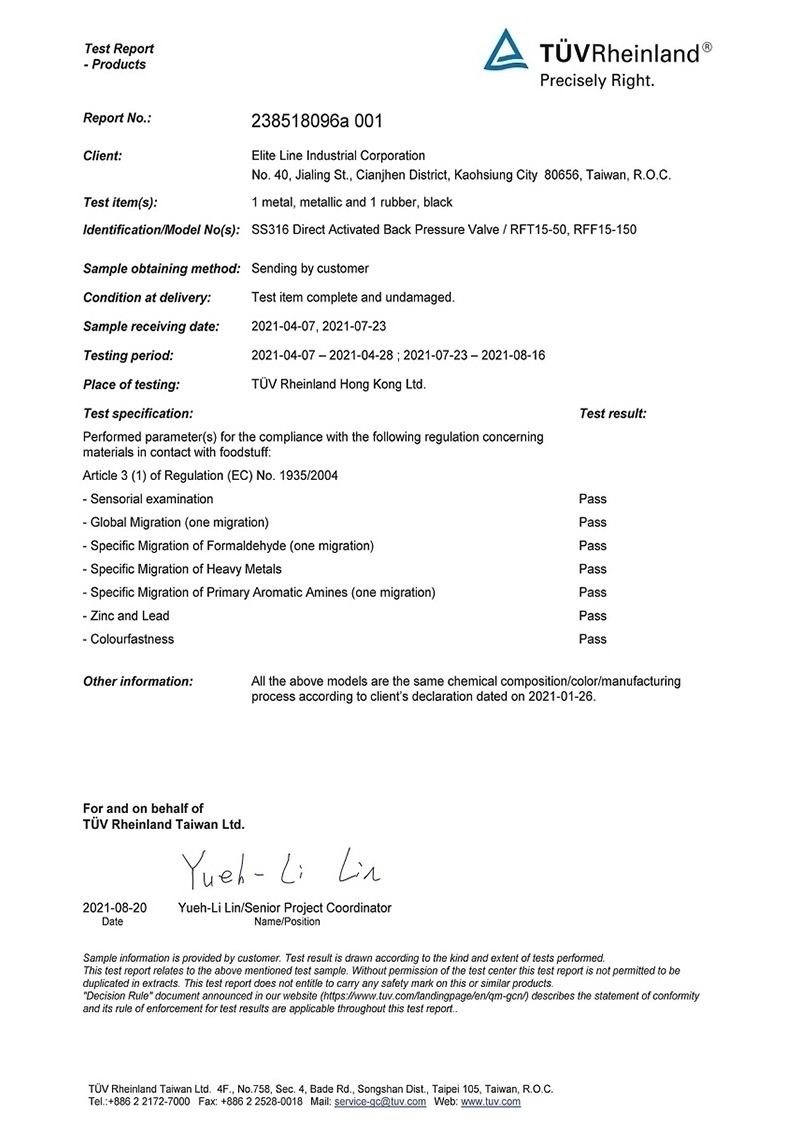 EC1935.2004(식품 접촉 자료) 보고서-RFT 및 RFF